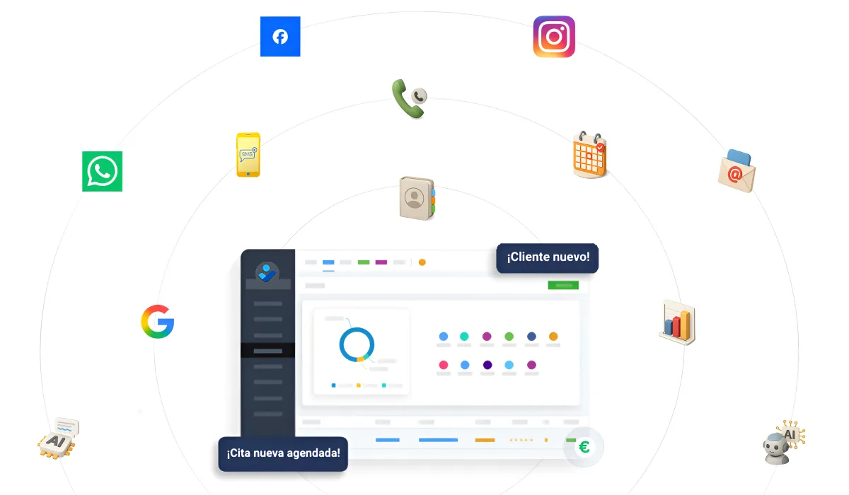 Llamadas, WhatsApp, SMS, email, redes sociales, ventas y marketing.